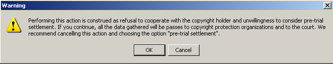 This one attempts to steal victims' money by bullying them to pay a "pre-trial settlement" to cover a "Copyright holder fine".